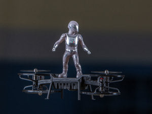 The AeroBoard features a 380mAh removable flight battery for flights of up to 7 minutes. By adding extra batteries, you don't need to wait for the unit to recharge to continue flying. For even more fun, purchase a set of lightweight hoops (sold separately). With the hoops you can create obstacle courses test your flying skills or make it a competition with your friends! Because the AeroBoard is an RTF (Ready-To-Fly) aircraft, it arrives factory-assembled with everything needed to experience the fun of indoor micro RC flight, or outside in light wind. A sticker sheet is included so you can customize your pilot's look. The AeroBoard also includes a 2.4GHz 4-channel transmitter (with sticks and buttons that match the color of your pilot), and a USB charger for the flight battery. Just add 3 AAA batteries to the transmitter and you can be testing your flying skills around the house or in your back yard within minutes of opening the box.