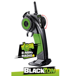 Under the aggressive BlackZon branded black and green monster truck body, the compact, sleek chassis houses plenty of get-up-and-go! Preloaded with a brushed electric 390 motor and Li-Ion 9.6V 800mAh battery, you'll have all the power you need, plus a USB charger for ultimate charge-almost-anywhere convenience!