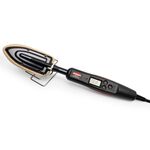- After installing the sock, place the iron on the included stand, then place it on a heat resistant surface. Connect the iron to an appropriate AC wall outlet. Press the ON/OFF button to power the iron on. Adjust the temperature to the desired level with the temperature adjustment buttons.