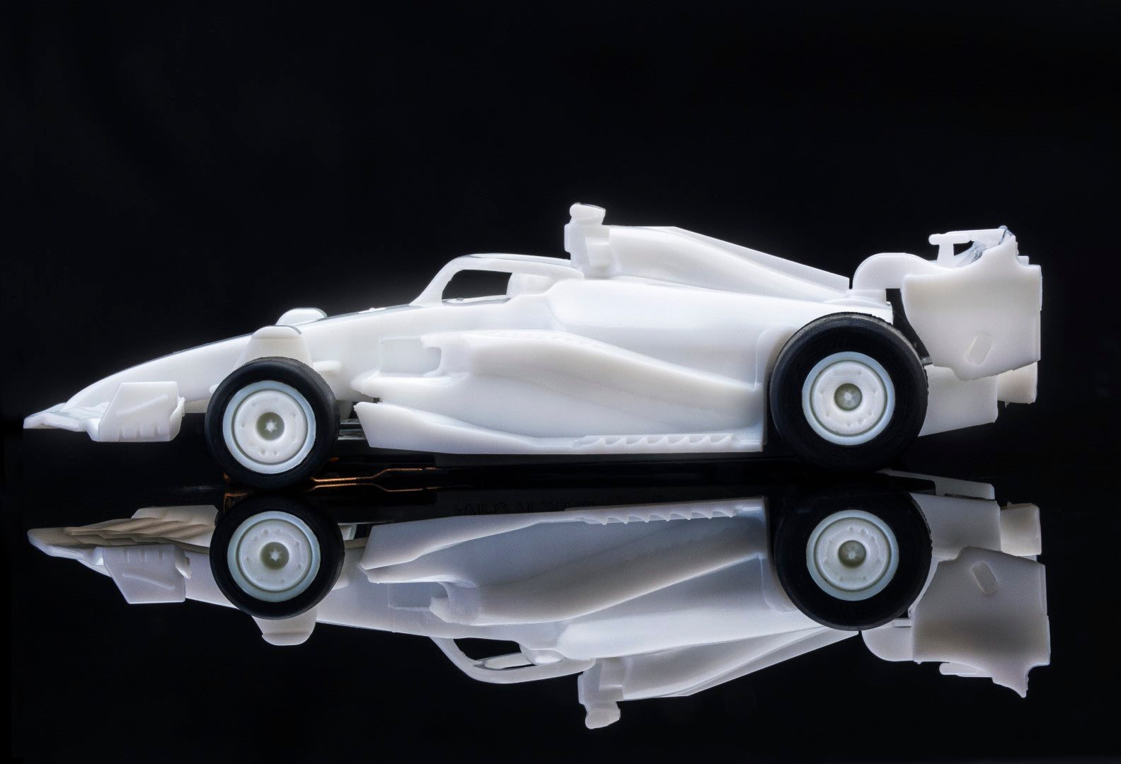 This white, paintable, and impeccably detailed F1 is perfect for modeler’s