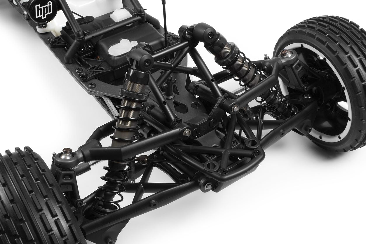 The HPI Baja 5B is also equipped with extra-big and super-tough suspension parts, featuring awesome HPI durability! With its expertly designed molded composite suspension plus extra-long adjustable HD shocks, and massive high impact nylon 3-piece beadlock wheels, the Baja 5B is ready for full-speed racing on any off-road circuit!